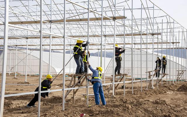 3月20日,在太原市阳曲农投现代农业科技示范产业园,施工人员加紧施工。阳曲农投现代农业科技示范产业园项目是阳曲县现代农业产业示范区与江苏绿港现代农业发展有限公司共同打造的一个现代农业引领项目,占地面积809亩,总投资4.1亿元。走进园区,最吸人眼球的便是眼前成片的玻璃温室。玻璃温室采用智慧农业技术和无土栽培水肥一体化技术,不但让种植蔬菜变得简单,同时还能在节约人员成本的前提下,大大提高产量。将来,这里的种植将全部实现智能化。